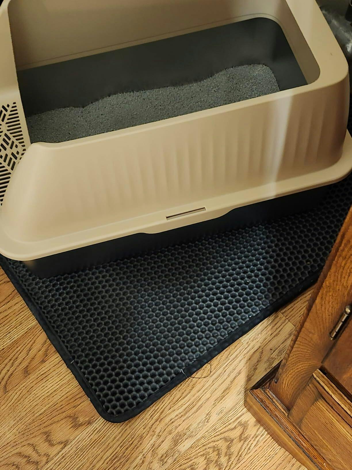 So happy with this litter box and mat! No litter on the floor and I have two cats. I also have a small space and it fits perfectly. I feel like the stainless steal in general prevents oders. So much better than the plastic litter box. Wonderful purchase!!