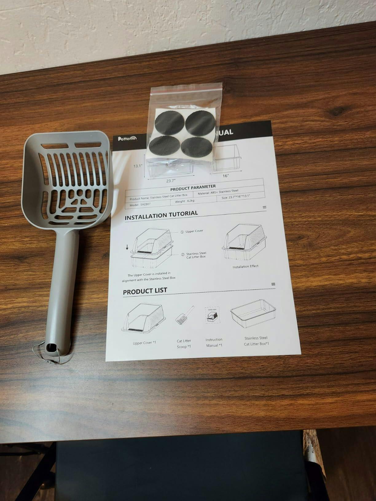 Needed a second litterbox - stainless steel is the best! Huge difference in odor control and incredibly easy to wash. I literally just rinse it in the backyard with a hose and a spritz of Simple Green, no scrubbing required. Topper-wall snaps on securely. Effectively contains the litter when my teenager kitten kicks the litter all over the place. The scooper is a tad small so I just bought a cheap, larger one at Petsmart. Easy peasy.